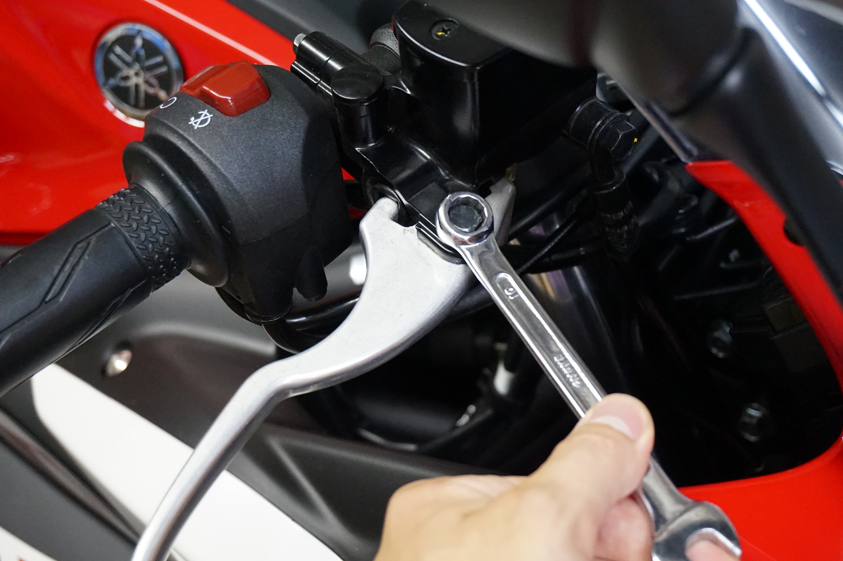 しっかりと差し込んで、ロックナット閉めてアジャスターを調整すればレバーの交換はおしまいです。