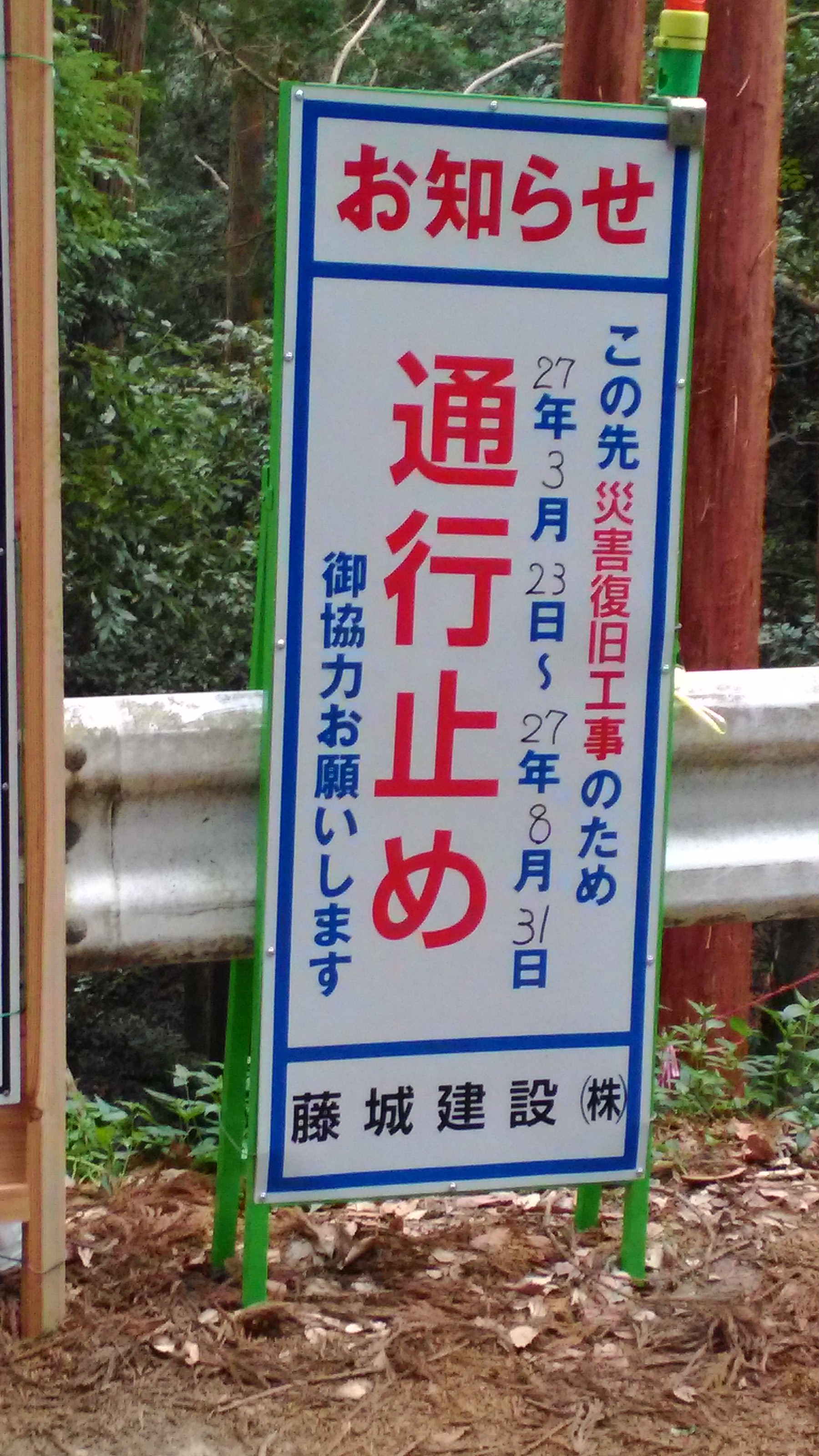 ここをクリアしてしばらくするとこんな看板が見えてきます。こちらも写真が失敗してますが。
