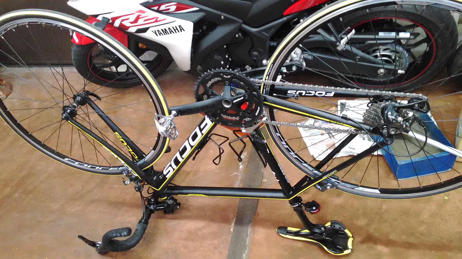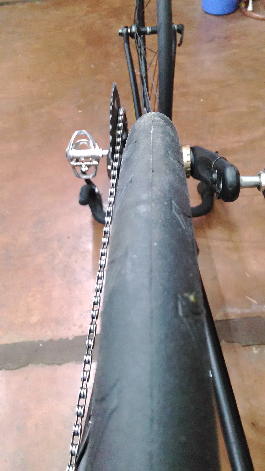 ギアを前はインナー、後ろはトップにしてー、ひっくり返してーっと。